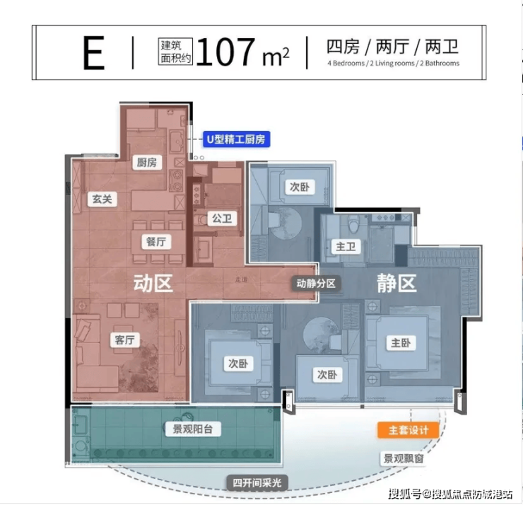 94㎡四房两厅两卫:四房布局适配二胎或三代同堂家庭,主卧带独立卫浴,空间分配合理,总价约320万元;