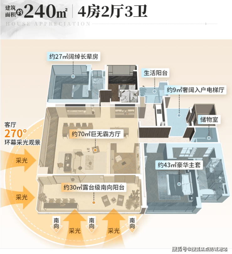 项目采用了先进的设计理念,实现了最高可达110%的实用率,通过合理的空间布局和设计优化,提升了居住体验。同时,部分户型还配备了270°飘窗和南向巨幕阳台,最大程度地引园景入室。