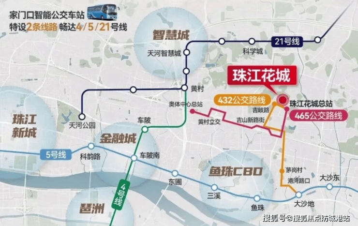 虽然珠江花城被批评为交通不便,但项目内设有公交车总站,并开通了多条公交线路,包括465路接驳地铁4/21号线黄村站,432路直达地铁5号线大沙地站,方便居民出行。此外,规划中的地铁19号线也将进一步提升区域内的交通便捷性。