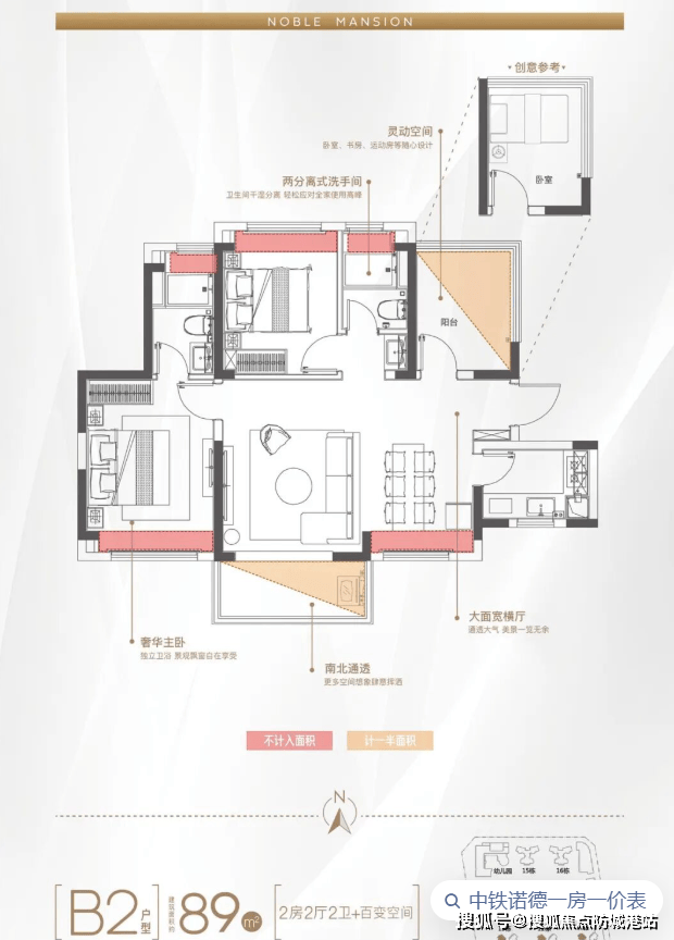 目前,项目在售户型丰富多样,涵盖了80平方米至129平方米的多个面积段。其中,小户型系列包括80㎡、88㎡、89㎡、90㎡、98㎡、99㎡等,主要以三房为主,非常适合刚需家庭或年轻夫妇。这些户型虽然面积不大,但通过科学的空间布局,实现了动静分区、干湿分离,并且保证了每个房间的采光与通风。例如,88㎡的三房户型,采用了经典的竖厅设计,客厅连接阳台,视野开阔;主卧带独立卫生间,保障了主人的私密性;次卧与书房布局合理,互不干扰。