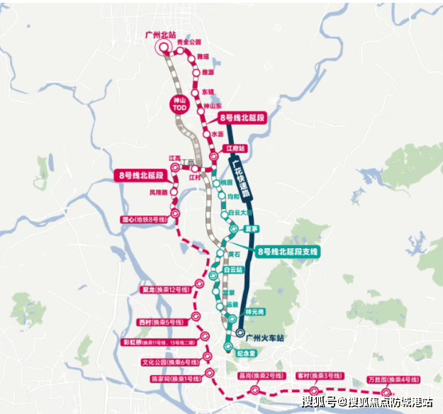 在现代都市生活中,交通的便捷程度直接决定了生活的半径与质量。中铁诺德·阅泷在交通配套上的布局,堪称“王炸”级别。项目门前规划有双地铁口,分别是地铁8号线北延线及其支线交汇的“江府站”。这一重磅交通利好的落地,将彻底打破区域的空间限制,把项目纳入广州主城区的“半小时生活圈”。