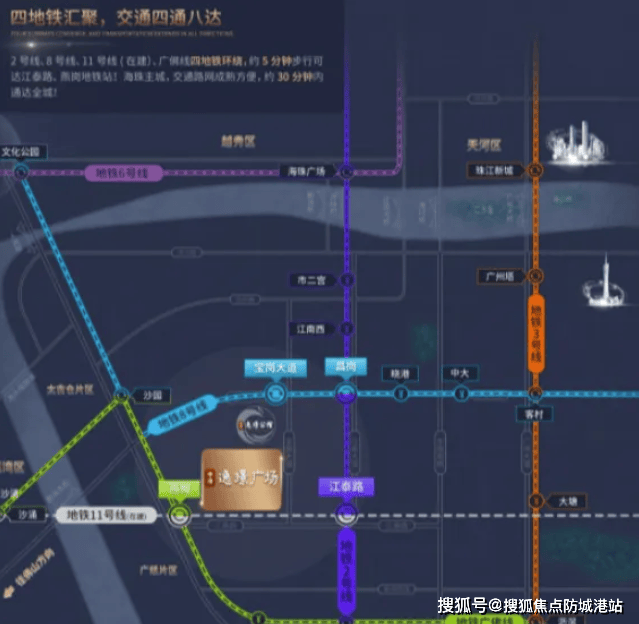 随着新海珠产业规划的推进,特别是“一区、一谷、一湾”的建设,中冶逸璟广场所在的地理位置将日益凸显其价值。这里不仅是新兴产业发展的核心地带,而且通过强大的交通枢纽网络,能够快速连接广州其他主要区域,吸引大量人才和资金流入,推动房地产市场的持续繁荣。