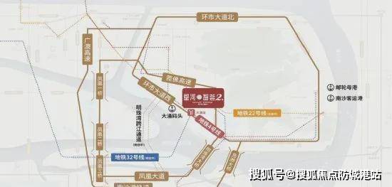 不仅如此,项目与明珠湾双生活环紧密相连,距离明珠湾大桥约 2 公里,内环有环市大道、蕉门隧道(规划中)以及明珠湾跨江隧道(招标中),外环通过莞佛高速辅道、凤凰大桥以及明珠湾大桥相连,无论是去广州市中心,还是南沙各大板块,交通都轻松畅达。