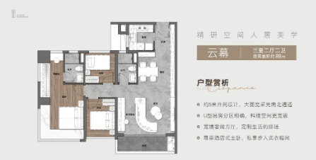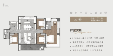 云筑上品规划了5栋住宅,所有楼栋均采用蝶式塔楼设计,以最大化采光效果。户型使用率超过100%,具体户型如下: