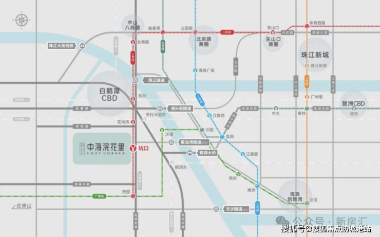 花地湾的生活配套及交通优势,为居民提供了极大的便利。首先,地铁线路的便捷布局极大地方便了居民的出行。除了1号线坑口站、5号线滘口站以及广佛线沙涌站外,未来还将建设11号线、22号线以及28号线,进一步提升区域的交通便利性。尤其是“三桥五隧”的立体交通网络,将更快速地连接荔湾、越秀、天河等主要城区,方便居民无缝连接广州的各大商圈与商务区。