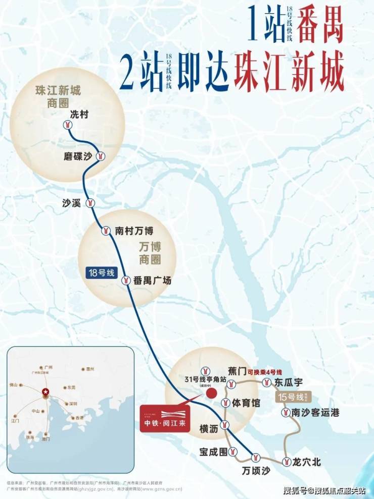 中铁阅江来位于南沙明珠湾板块,东临灵山岛,南望蕉门水道,西接大山乸森林公园,北靠南沙港快速路。项目地理位置优越,南沙被定位为大湾区的未来金融中心,与广州其他核心区域紧密相连,形成高效便捷的通勤网络。