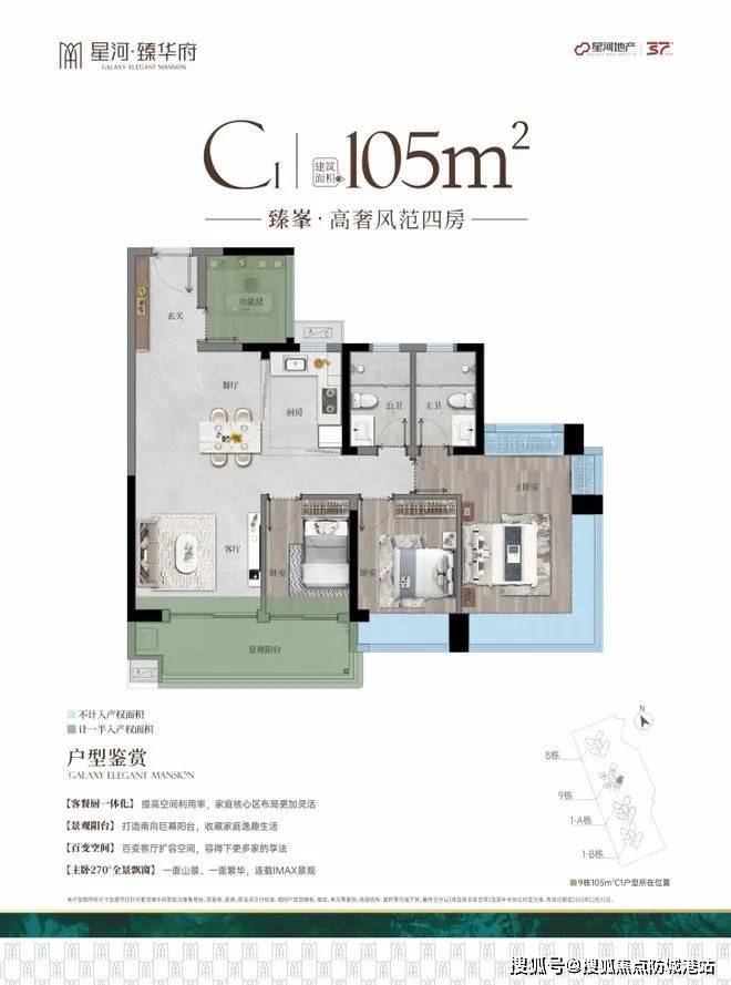 星河臻华府以“科学城芯+低密科技住宅+全龄教育链”为核心优势,打造天河智谷板块唯一在售新规户型项目。项目均价27000元/㎡,价格低于周边10%,且得房率最高达102%,同等面积多享一间房。