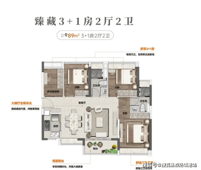 84方:豪华大户型,南北通透,适合追求高品质生活的家庭。