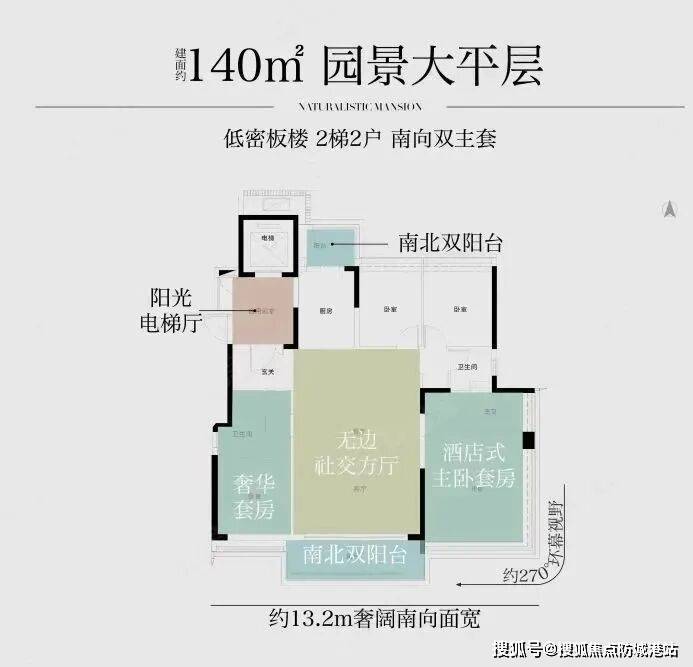 140㎡户型:板楼设计,享中轴园林景观,户型为低密板楼设计,这在市中心比较少见。2梯2户设计,电梯位于核心筒中间,业主从电梯出来后,往两个不同方向回家,互不干扰。