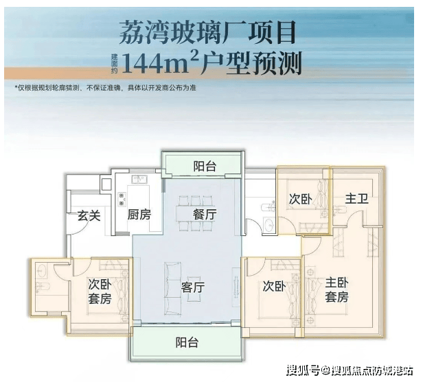 对于追求极致居住体验的豪宅客群,项目推出了建面约144平方米的四房户型。这一户型采用了3T3的梯户比,并实现了专梯专户,电梯直接入户,极大地提升了私密性和尊贵感。层高更是拔高至3.15米,站在这样的空间里,几乎感受不到任何压抑感。双套房设计是该户型的一大亮点,主卧和老人房分别布置在户型的两端,中间由公共活动区隔开。这种布局充分考虑了三代同堂家庭的居住习惯,老人的早起晚睡不会打扰年轻人的休息,年轻人的夜生活也不会影响老人的睡眠,实现了真正的互不打扰。双套房设计还意味着每个房间都配有独立卫生间,使用更加便捷,避免了早晚高峰的排队现象。此外,该户型还拥有超大的面宽和进深,采光面积极大,景观视野开阔,是典型的“大平层”享受。