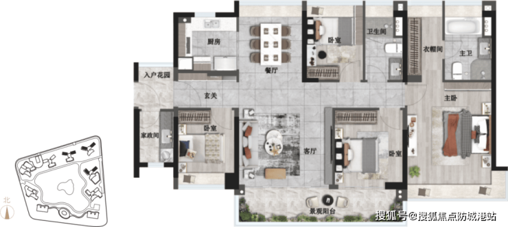 说到产品,珠江海御有几个设计点值得深入聊聊。首先是它的规划布局。它采用了点式楼结合U型曲线布局,并且做到了超宽的楼间距。这样做的好处非常直观:最大限度地让更多的户型能够无遮挡地看到海景,同时保证了每一户的通风和采光效果。据官方资料和现场观察,项目有相当高比例的户型是正南向直面大海的。在广州,拥有纯粹南向看海视野的住宅本身就很稀缺,因为海岸线资源有限。这种“推窗即海,视野无界”的体验,是它最核心的溢价点之一。