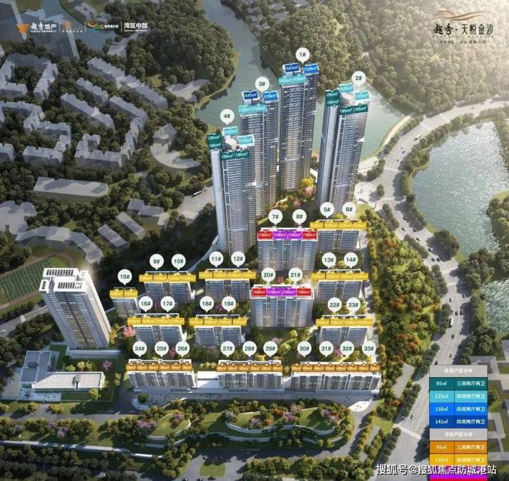 提供多种户型选择,从小高层95㎡到超高层141㎡,满足不同家庭的需求。