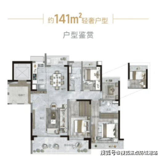 141㎡四房两卫:均价3-3.5万/㎡,总价425-495万,南北通透、双阳台设计,兼顾功能与舒适,满足二胎或父母同住需求;