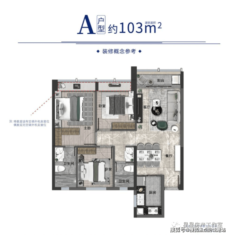 同时,按照服务型公寓的建设要求,所有阳台必须封窗,空调外机安装于奇数层卧室飘窗处且不能打掉,若想打掉飘窗增加空间,只能选择偶数层单位。这种设计虽然在一定程度上对空间改造有所限制,但也保证了建筑外观的整齐美观以及整体的安全性和稳定性。