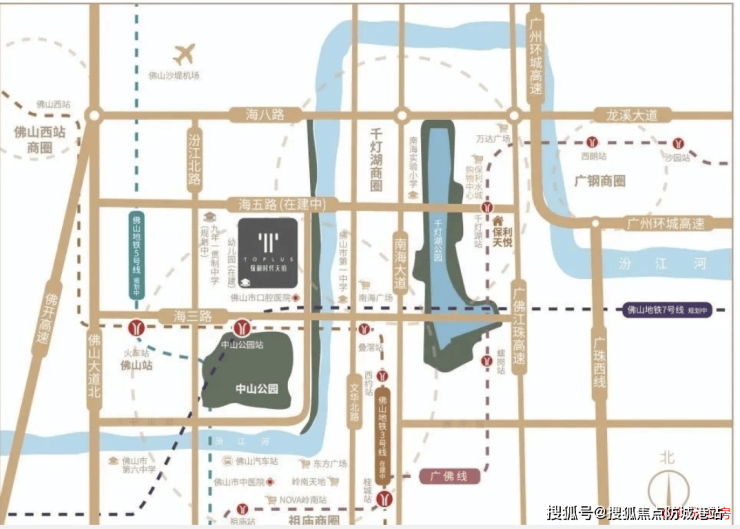 保利时代天珀坐拥禅城区城北核心地段,周边地铁3号线中山公园站近在咫尺,未来随着5号线和7号线规划建设,项目将成为三条地铁线路交汇的核心枢纽。地铁网络完善,三站直达桂城,八站可达广州中心,极大提升出行效率。此外,未来规划中的广湛高铁佛山站将近距离服务该区域,预计2025年投入使用,带来湾区一小时生活圈的便捷体验。项目周边主干道海五西路即将通车,驱车10分钟内可达千灯湖,交通多元便捷,满足居民多样化通勤需求。
