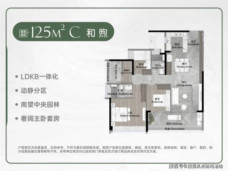 针对天河北老旧小区户型差、暗房多的痛点,项目主打建面约108-180㎡全南向四房,实得面积媲美市面140-200㎡户型。以125㎡园景央座为例: