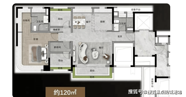 各个房间尺度均衡,无狭小暗房,厨卫干湿分离,居家动线流畅合理