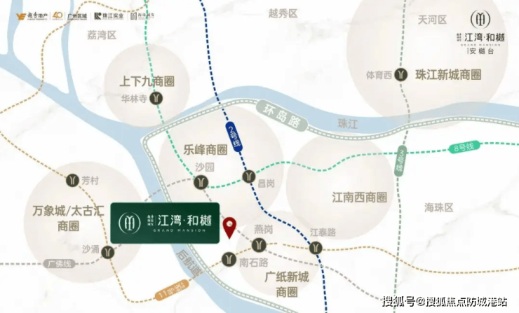 交通出行方面,江湾和樾展现了惊人的通达性,真正实现了“出门即地铁,上车通全城”的便捷生活。项目步行约800米即可到达地铁8号线沙园站。8号线是广州东西向的交通大动脉,向西连接荔湾,向东贯穿海珠,直达琶洲会展中心。居住在江湾和樾,乘坐8号线仅需几站即可到达昌岗商圈,享受成熟的商业配套;继续向东,可快速抵达客村、磨碟沙,进而到达琶洲互联网集聚区,对于在琶洲、珠江新城工作的精英人士来说,通勤时间完全可控。
