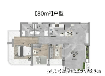 80㎡户型:做到三房两卫,四开间朝南,主卧带270°弧形飘窗;