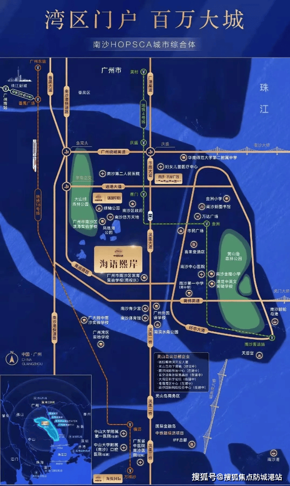 地理区位绝佳:位于南沙区发展中轴凤凰大道中心位置,区政府板块和明珠湾板块交汇处。
