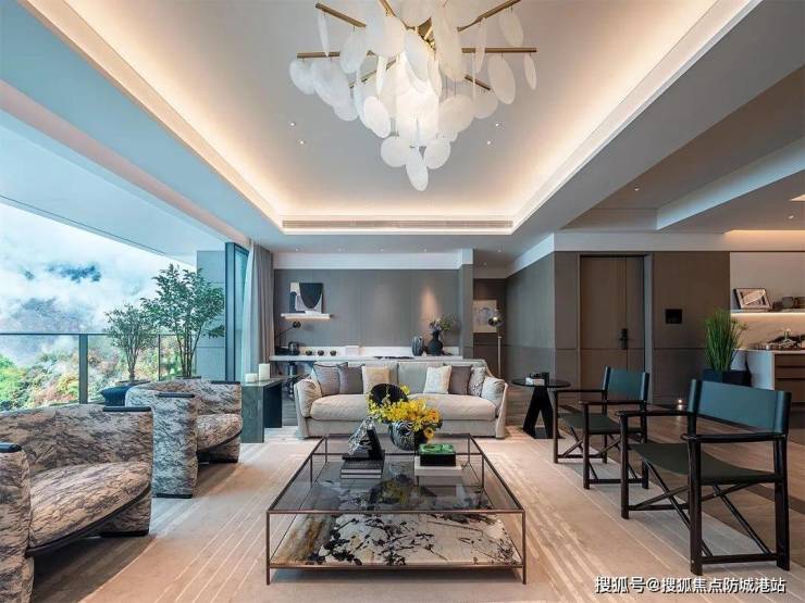 **质量呈现以及美观学**:项目由gad等多位世界殿堂级大师操刀,建筑外立面采用超大玻璃幕墙+挑檐铝板设计,造型简约大气。园林打造为“四谷三庭”的立体空间布局,借助砂、石、水、木等元素营造禅意,还种植多种花期不同的树木。车库天花板采用木纹铝板格栅吊顶,艺术曲面发光灯带造型精致,细节之处尽显品质。