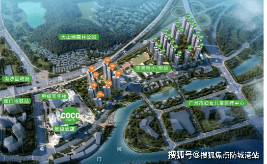 商业配套极为丰富,自带 10 万㎡情景式购物中心 COCO Park,打造 4 层主题购物空间加 1 层天台花园,集潮流、美食等多种业态于一体,引进百佳永辉、横店影城等众多重磅主力品牌,首进南沙品牌超 60% ,预计年底开业。周边还有南沙万达广场等大型购物娱乐广场。医疗方面,距项目约 200 米有广州市妇女儿童医疗中心,周边还有南沙区第二人民医院、广州市第一人民医院南沙医院等,为家人健康提供有力保障。