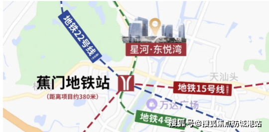 交通便捷,位于蕉门地铁站旁,在售三期距离 4 号线蕉门站约 610 米,步行 10 分钟左右可达。这里是三地铁交汇之地,除已运营的 4 号线外,15 号线(规划中)、22 号线(建设中)也将在此交汇,3 站可到庆盛高铁站,方便转乘前往深圳、香港,畅达湾区各地。