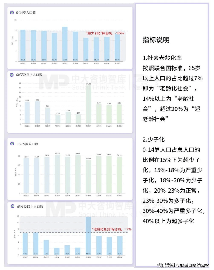 1. 2020年,前10强区县普遍进入“超少子化”社会,广州市海珠区老龄化初现