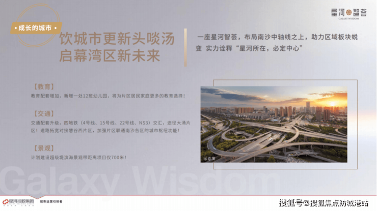 星河智荟,是“城市运营引领者”星河地产深耕南沙 15 年,布局南沙明珠湾板块的首个项目。