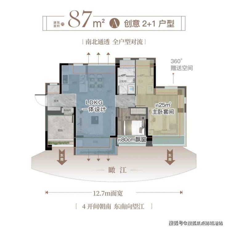 建面约87㎡A户型堪称“以小赢大”的典范,能做到南北对流,4开间朝南+全通透格局,可以和市面上110-120㎡的户型一决高下。