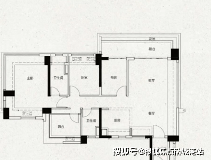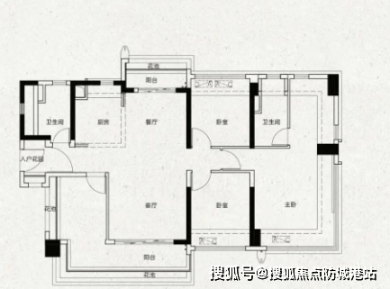 120㎡四房两厅两卫:四开间朝南,居住与生活动静分离,南向大阳台或南北双阳台,主卧带270°飘窗。