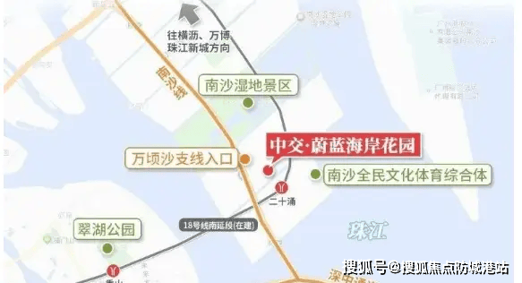 地铁 18 号线南延线作为大湾区重要的跨城交通干线,通车后将极大缩短南沙与广州中心城区、深圳、中山、珠海等地的通勤时间,进一步巩固南沙大湾区交通枢纽的地位,沿线物业价值将迎来新一轮上涨。中交蔚蓝海岸距离地铁 18 号线南延线二十涌站仅 500 米,是地铁红利直接辐射项目,未来增值潜力巨大。