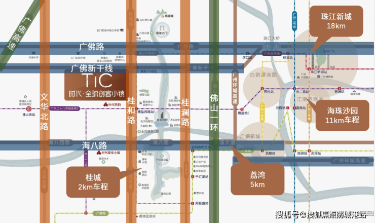项目位于广州地铁28号线“奇槎站”旁,2个站到荔湾,3个站海珠,4个站到越秀,2023年9月已正式动工。