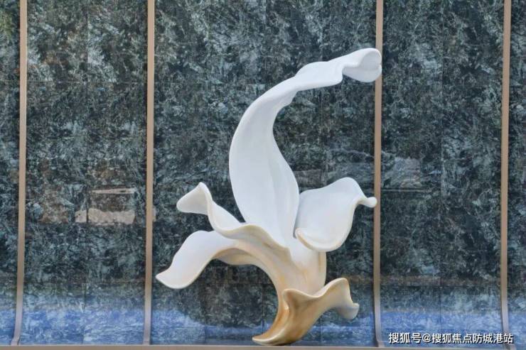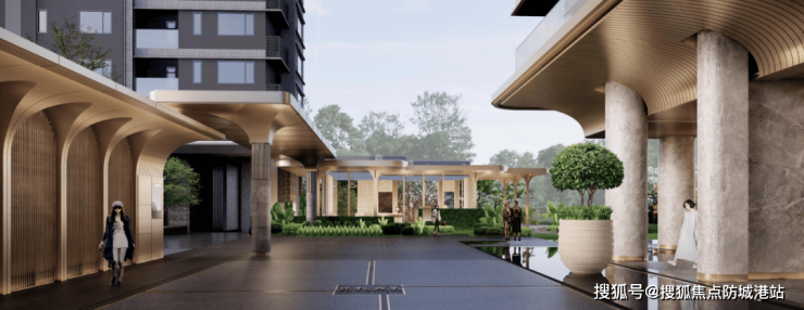 穿过气势恢宏的门楼,一个白玉兰主题的景观装置迎接着每一位到访者,象征着高尚品性。沿着小径前行,中央水景墙搭配罗汉松与喷泉水景,营造出“水生木”的和谐格局,让人在归家的路上感受到自然的美好与宁静。