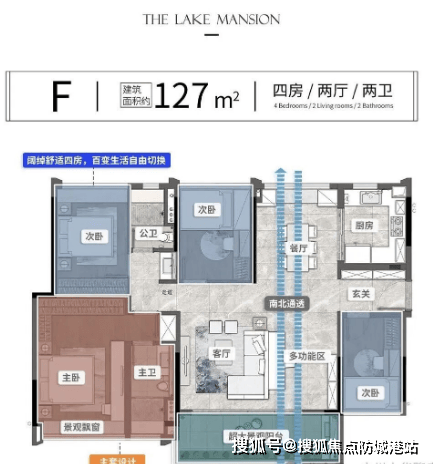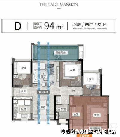 【94㎡南北对流四房】:南北对流设计,极致采光通风,主卧宽敞舒适。