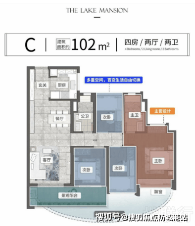 【102㎡二胎首选四房】:拥有超6米双面宽阔景阳台,四开间朝南,通透明亮。