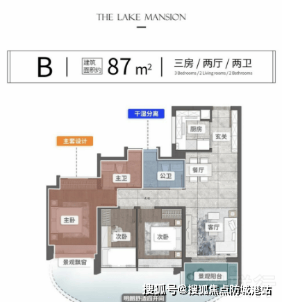 【87㎡自住首选三房】:四开间朝南,动静分区明显,高赠送面积,使用率接近100%。