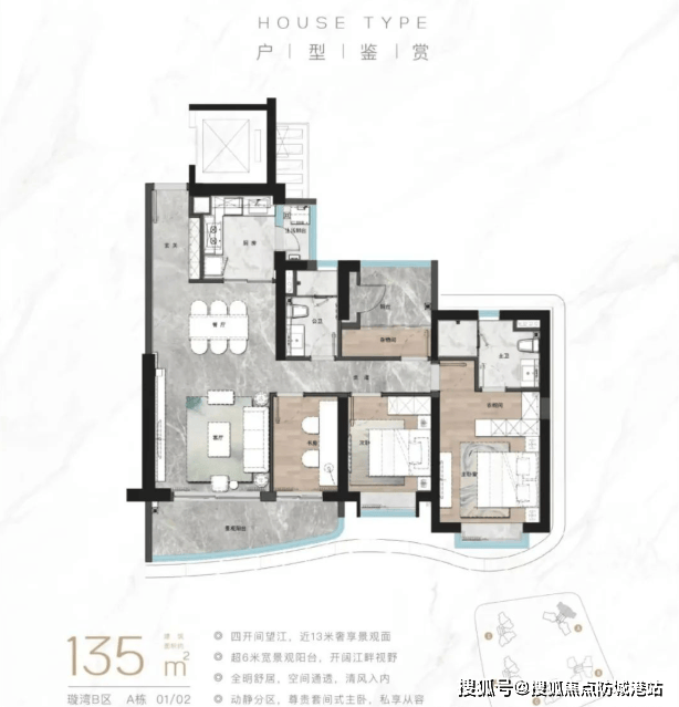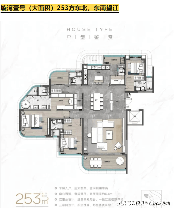 目前在售的是璇湾B区,户型涵盖109平方米至253平方米的二至四房单位。所有产品均为3T4户的低密设计,得房率达到80%,绿化率高达35%,容积率为2.2,确保了居住环境的舒适度。特别是253平方米的大面积户型,可享受东北或东南望江的壮丽景观。