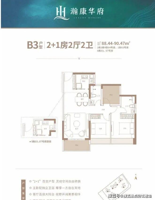 精致2+1百变小三房(90㎡):功能灵活,适合年轻家庭居住需求。