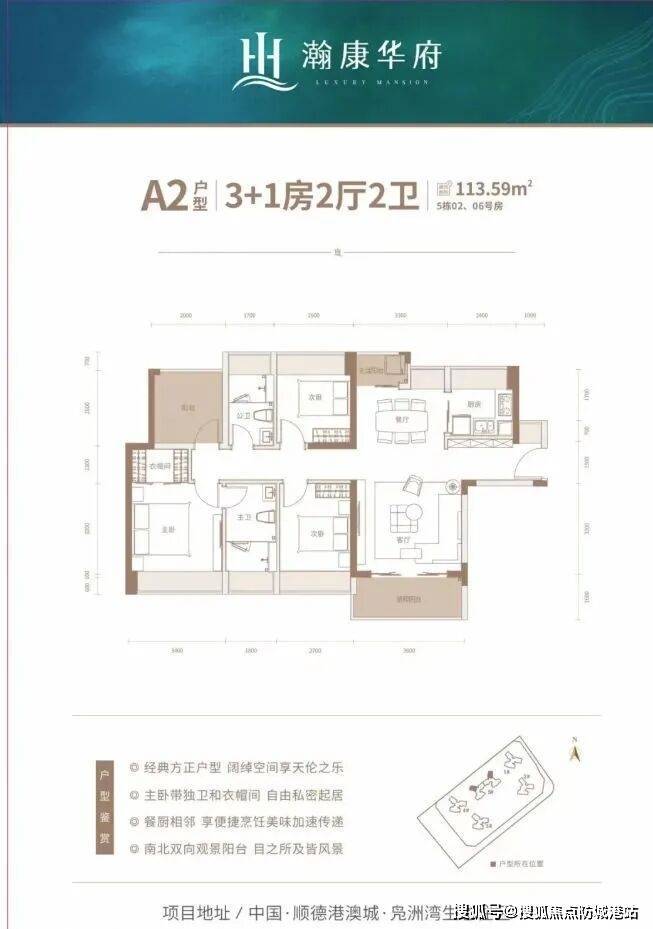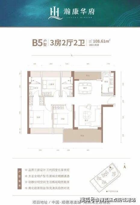 瀚康华府,定位为“顺德港澳城 江岸生态府”,提供建面约84 - 123㎡的三至四房江景华宅。项目位于中国・顺德港澳城・凫洲湾生态住区,总占地约3万㎡,总建筑面积约7.4万㎡,由5栋楼组成,共700户。两梯四户的设计,容积率低至2.45,绿化率达30%,毛坯交付,让业主可以根据自己的喜好自由打造理想家园。