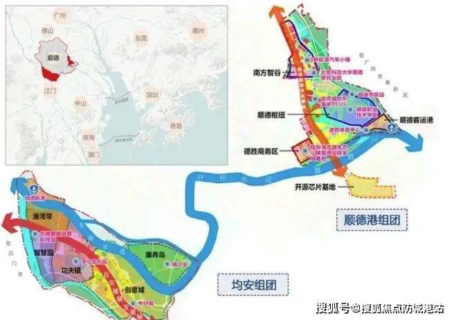 顺德港澳城规划总面积达100平方公里,包括顺德港组团及均安组团,将比肩广州南沙等地,全面对接大湾区优势资源。均安组团重点发展“一镇、一岛、一港”,打造产业、文化、旅游“三位一体”新平台。区域内百度云计算中心等超百家高新产业入驻,区域价值未来将持续攀升。