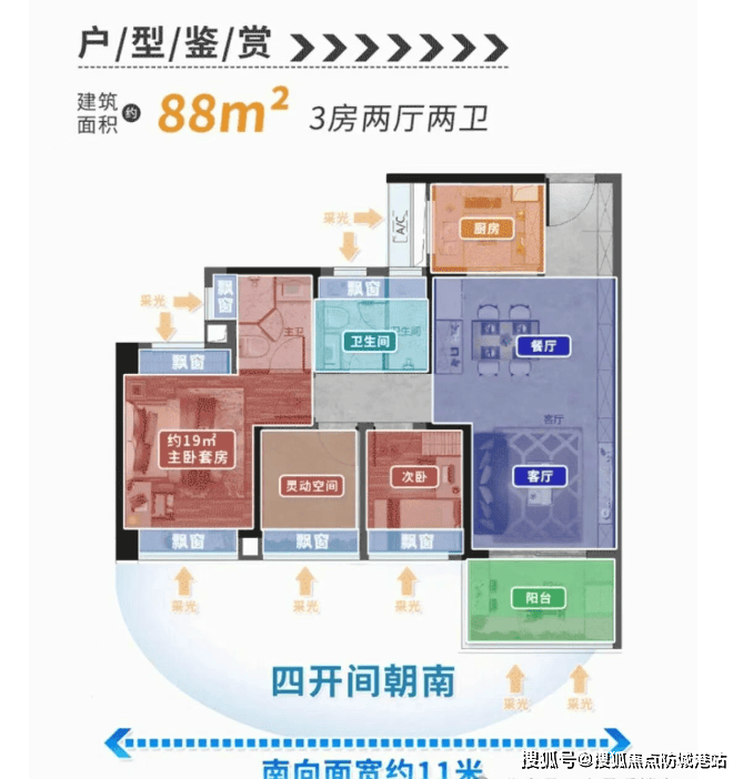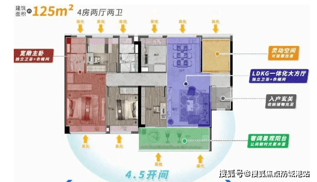 目前在售户型涵盖了88㎡至125㎡的三四房设计,满足不同家庭的需求。这些户型采用了全南向四面宽的设计理念,最大化室内采光和通风效果。