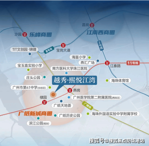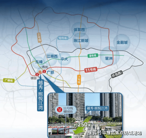 交通便利性是越秀熙悦江湾的一大亮点。项目周边拥有双地铁站,分别是广佛线燕岗站(约400米)和广州首条大环线11号线棣园站(约250米)。这两条地铁线路贯穿了琶洲、天河、海珠西和荔湾等重要区域,为业主提供了极大的出行便利。无论是前往珠江新城、琶洲CBD还是其他核心区域,都能实现高效通勤。此外,项目周边还有多条公交线路,进一步提升了出行的灵活性和便捷性。