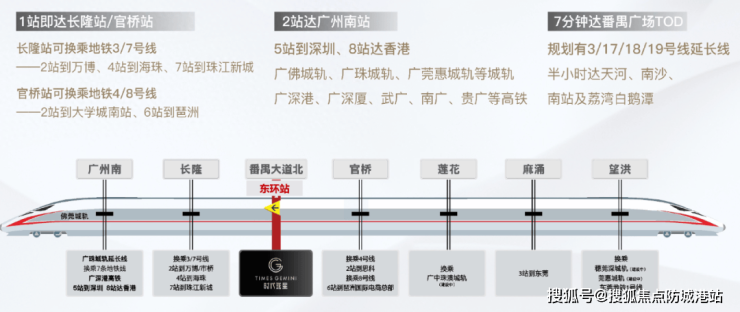 交通承载着城市生活与价值流动的双重功能,时代珑星凭借“轨道上盖+主干道辐射”的交通条件,在通勤效率与城市联通性上占据明显优势。项目紧邻在建的城轨东环站(城轨上盖,约150米距离),这一站点未来不仅能直达长隆站并实现多线换乘,更将成为区域短途通勤与对接广州市区的重要节点。以轨道交通为核心的通勤体系显著降低了工作日通勤时间和城市生活的不确定性,尤其在多线换乘的条件下,住户可享受“多目的地、少换乘”的出行便利。