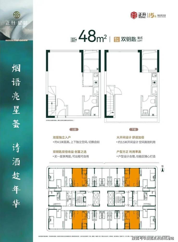 低密奢装与空间革新是正升·星荟的一大特色。项目不限购,提供精装建面约28-63㎡的百变空间选择,涵盖平层、复式(loft)、双钥匙户型。特别是建面约28㎡至臻双钥匙户型,楼上自用楼下出租或者分开出租,收获双倍租金,小面积低总价让投资回报更加可观。约4.5米超值层高创意空间设计,随心改造为观景空间、书房、影音室等个性化空间,重新定义爆款loft风潮。