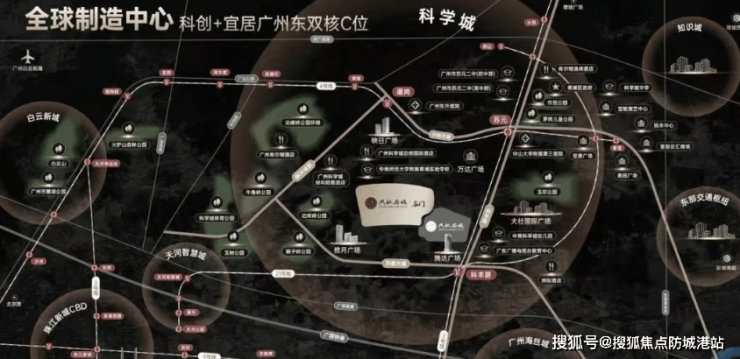 项目以400万方超大体量,实现了产业与居住的深度融合。自身200万方商业配套为区域内的科创人才提供了完善的生活服务,华师附九年一贯制学校解决了人才子女教育问题,三地铁交汇的交通优势则保障了通勤效率。这种“产业带动居住,居住服务产业”的模式,让项目成为科学城产城融合的典范,推动创新资源与生活需求的良性循环,助力湾区创新生态的构建。