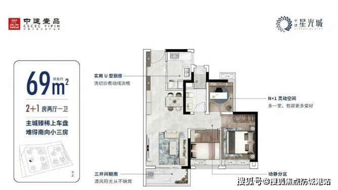 建面约69㎡全南向三房:低总价撬动高性价比生活。