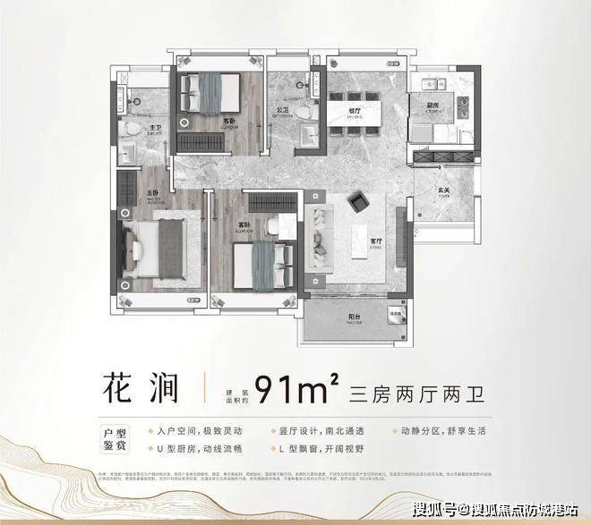 肆:令人惊艳的户型户型设计主打 “实用” 和 “通透”✨ 91-168㎡的三至四房,亮点超多:✔️91㎡四开间朝南:U 型厨房利用率高,小户型也能做到全明格局,刚需家庭闭眼入;✔️106㎡三房 / 四房:大阳台是标配,采光通风一级棒,功能空间划分合理,三口之家住得舒服;✔️142-168㎡大户型:2 梯 2 户私密性好,大开间设计 + 宽景阳台,适合改善家庭,整体布局中规中矩,符合大众居住习惯。没有花里胡哨的设计,每一寸空间都用在刀刃上,住起来踏实又舒服~