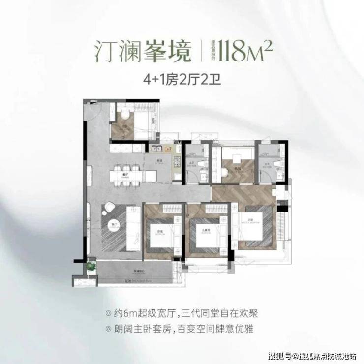 118㎡五房两卫则主打品质改善,适合追求居住舒适度的多孩家庭。该户型配备270度景观飘窗和独立衣帽间,主卧空间宽敞舒适,景观飘窗可欣赏湖山盛景,独立衣帽间满足女主人的收纳需求。五房设计空间充足,可设置儿童房、老人房、书房等,功能分区明确,兼顾实用性与舒适性。
