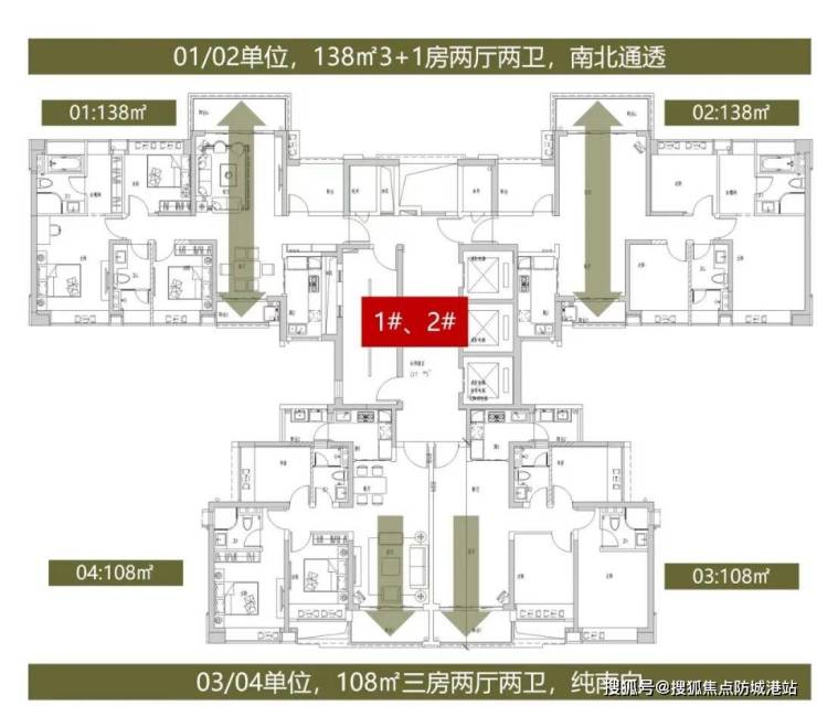 其中,108㎡三房户型通过双厅一体化设计,提升空间利用效率,同时配备双阳台结构,实现通风与采光的双重优化。138㎡四房产品则进一步强化居住体验,通过多开间朝南布局与南北通透设计,提升整体舒适度。